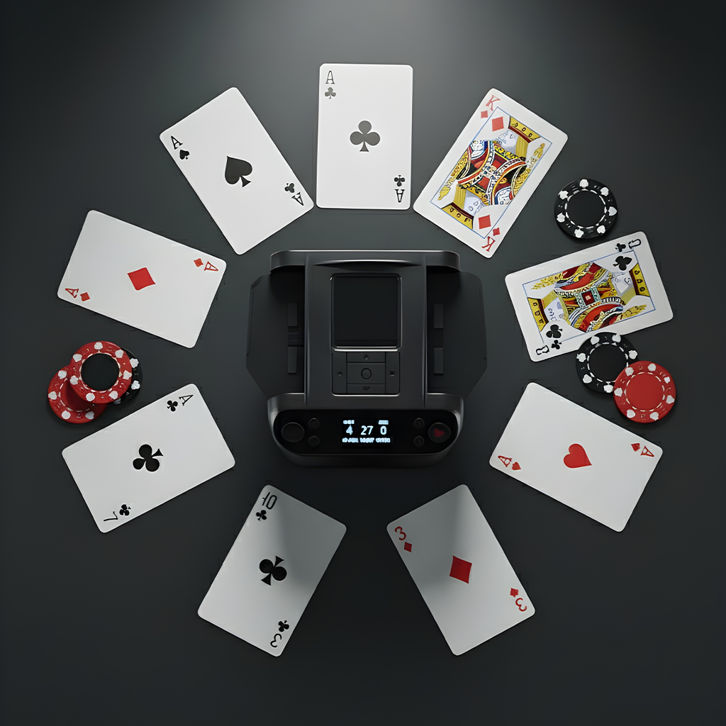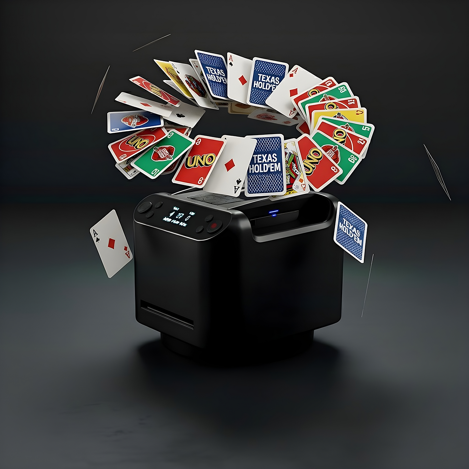 ShuffleBoss PRO™ delivers smooth, fast, and perfectly random shuffling for Poker, UNO, Blackjack, Bridge, and more.