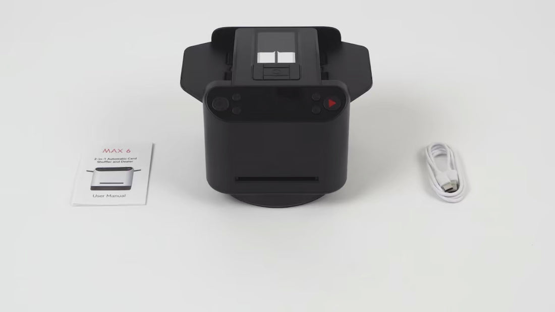 The ShuffleBoss MAX 6™ uses 360° rotation technology and 4 wireless remotes to deliver a fast, fair, and hands-free experience. It eliminates human error and misdeals by ensuring perfectly distributed cards every time. Stay focused on your strategy and the fun, while the digital dealer handles the rest.